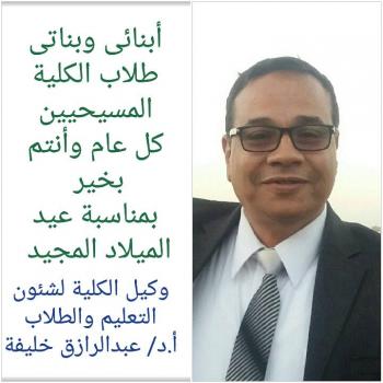 Mr. progressing D / Abdel Razek Khalifa, Vice Dean for Education and Student Affairs  Sincere congratulations to the Coptic brothers and college students on the occasion of the Coptic Christmas…