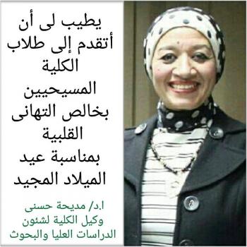 Ms. progressing D / Madiha Darwish, Vice Dean for Graduate Studies and Research  Sincere congratulations to the Coptic brothers and college students on the occasion of the Coptic Christmas…