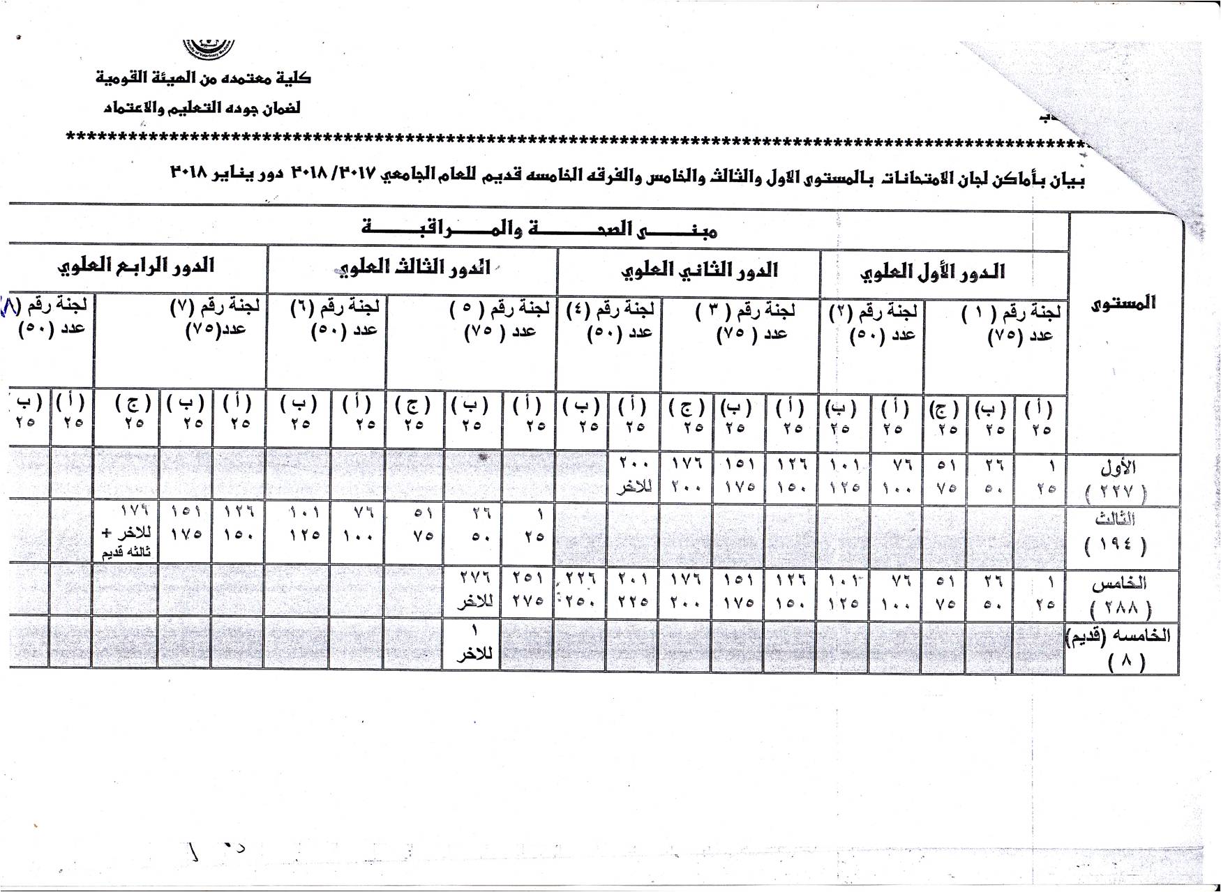Statement of the places of the examination committees for the first, third and fifth levelsAnd the fifth band is old for the academic year 2017/2018 the role of January 2018Health and Surveillance Building