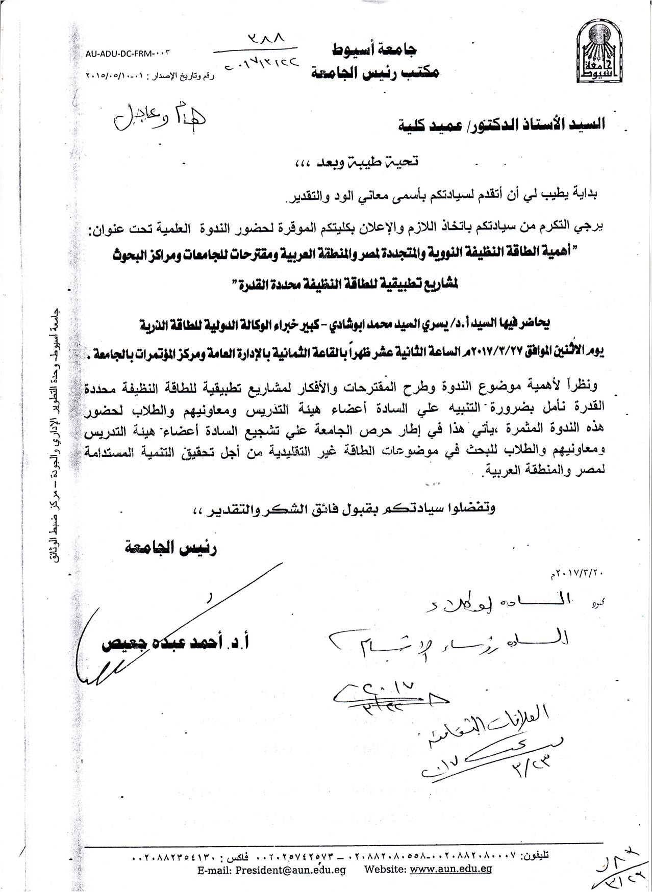 Symposium on the importance of clean and renewable energy for Egypt and the Arab region and proposals for universities Research centers for clean energy-specific energy projects)