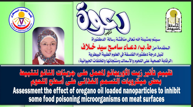 Invitation to discuss the doctoral thesis of a veterinarian / Doaa Sameh Sayed Khalaf 8 July 2023 Condolences