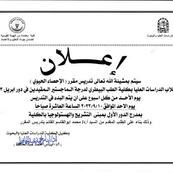 Invitation to discuss the master's thesis of Veterinarian / Hoda Jamal Sayed Hussein