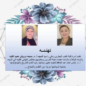 Ms. Prof. Madiha Darwish. The dean of the college, the agents and the college family. My sincere congratulations to Mr. Enas Ahmed Abdel-Hafez to renew her appointment as head of the anatomy and…