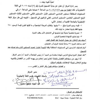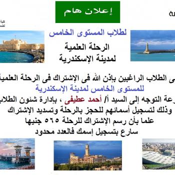 Students wishing to participate in the scientific trip for the fifth level of the city of AlexandriaFast approach to Mr. A / Ahmed Otaify, Student Affairs AdministrationIn order to register their…