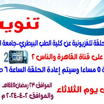 Note: A television episode about the Faculty of Veterinary Medicine onEl qahera we nas 2 channel