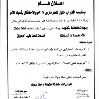 Important announcement for graduate students in October 2016 roleLecture in the subject of the analysis of oils and fatsWith d / walaa Farooq Amin on Monday 20/02/201710:00 pmThis doctoral and master…