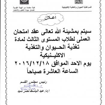 Determined to be the work of year exam in the subject of the history of Veterinary Medicine - the second levelAnd on Monday, 5/12/2016 runway Forensic Medicine and Toxicology fifth floor building…