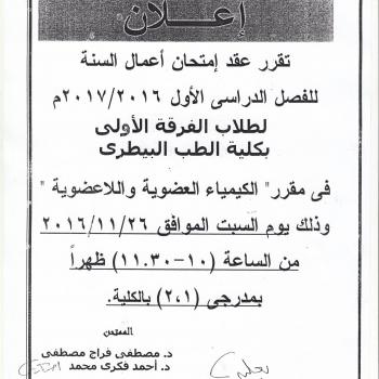 It has been postponed work year exam in the subject of the second-level anatomy To be Saturday, 11/19/2016