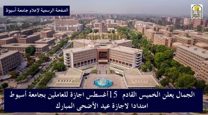 Next Thursday 15 August vacation in Assiut University 8 August 2019 Next Thursday 15 August vacation in Assiut University Extension of Eid al-Adha holiday. And every year and your presence okay