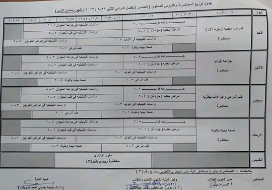 Schedule of lectures and practical lessons during the month of Ramadan - the fifth level 15 March 2023