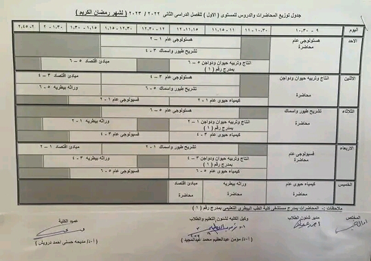 Schedule of lectures and practical lessons during the month of Ramadan - first level
