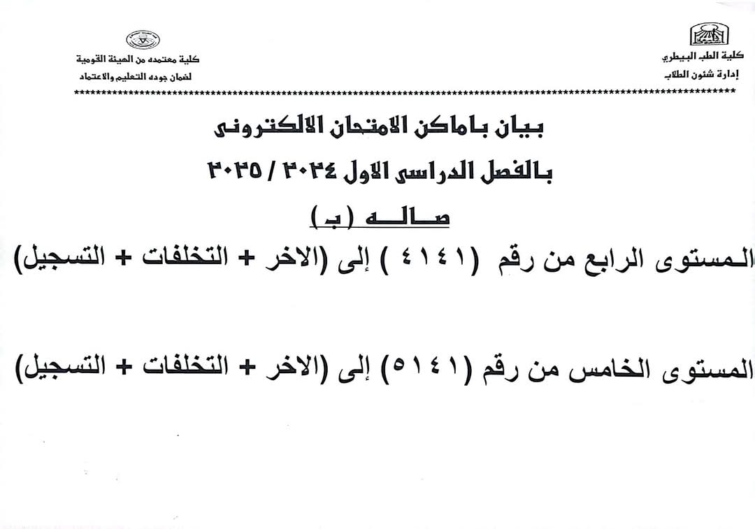 Statement of the locations of students’ distribution in electronic examination halls from the second to the fifth level, Hall B 22 December 2024