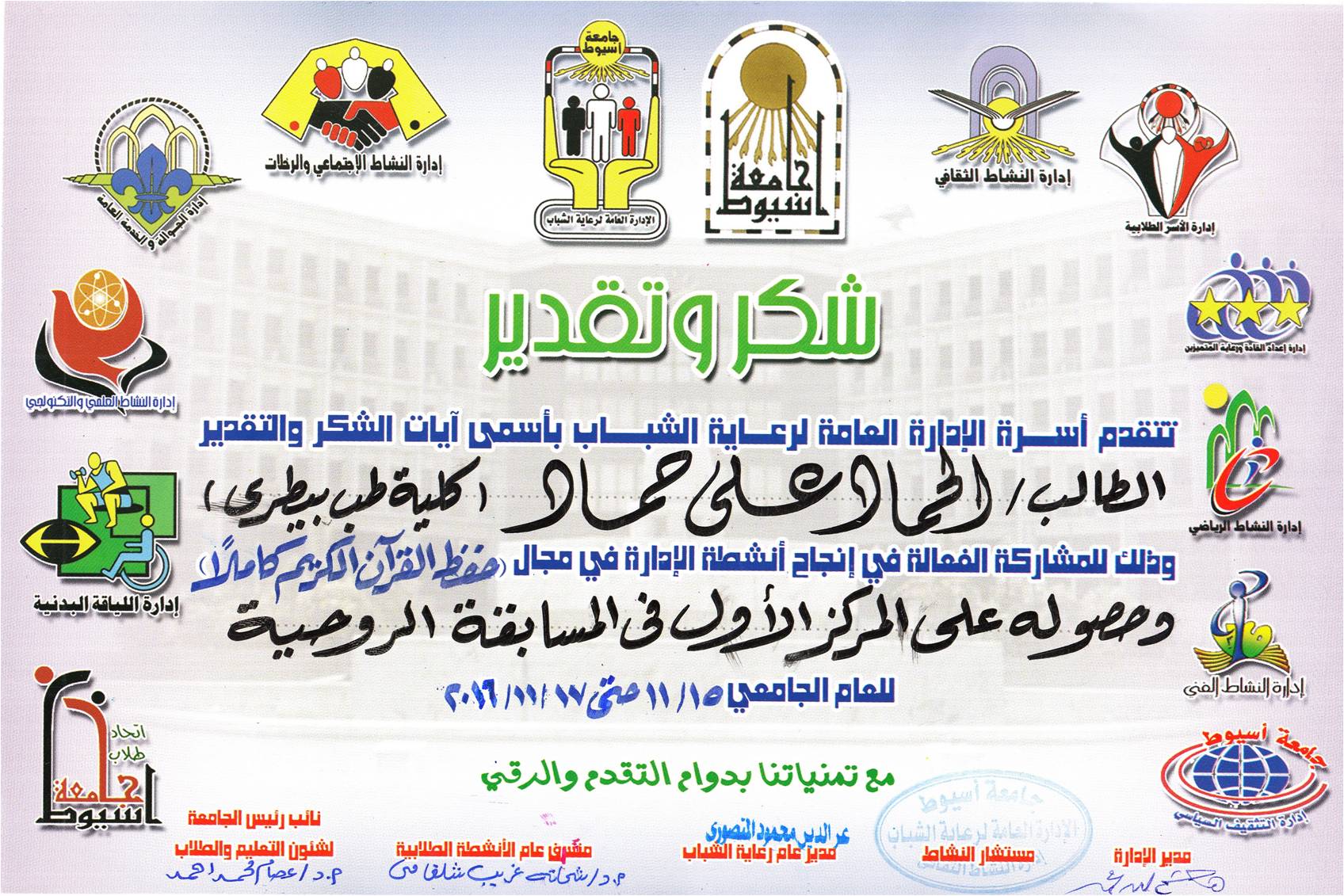 Student Hammad Hammad got the student level VThe first place in a competition memorizing the whole QuranAt the university levelFor the academic year 2016/2017